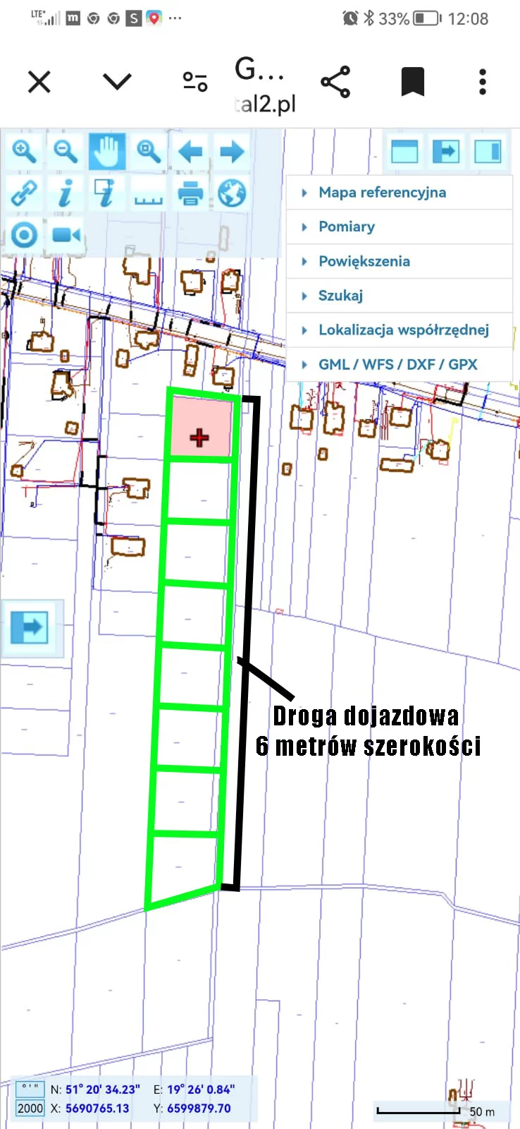 -do działek prowadzi droga o szerokości 6 metrów, nieutwardzona,