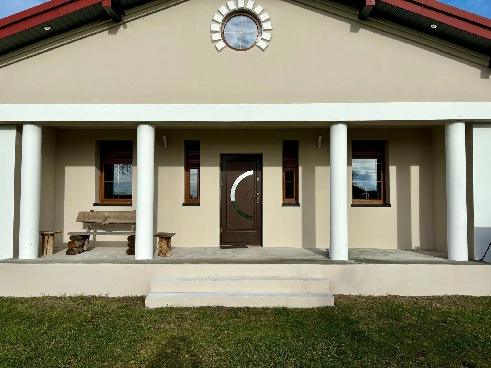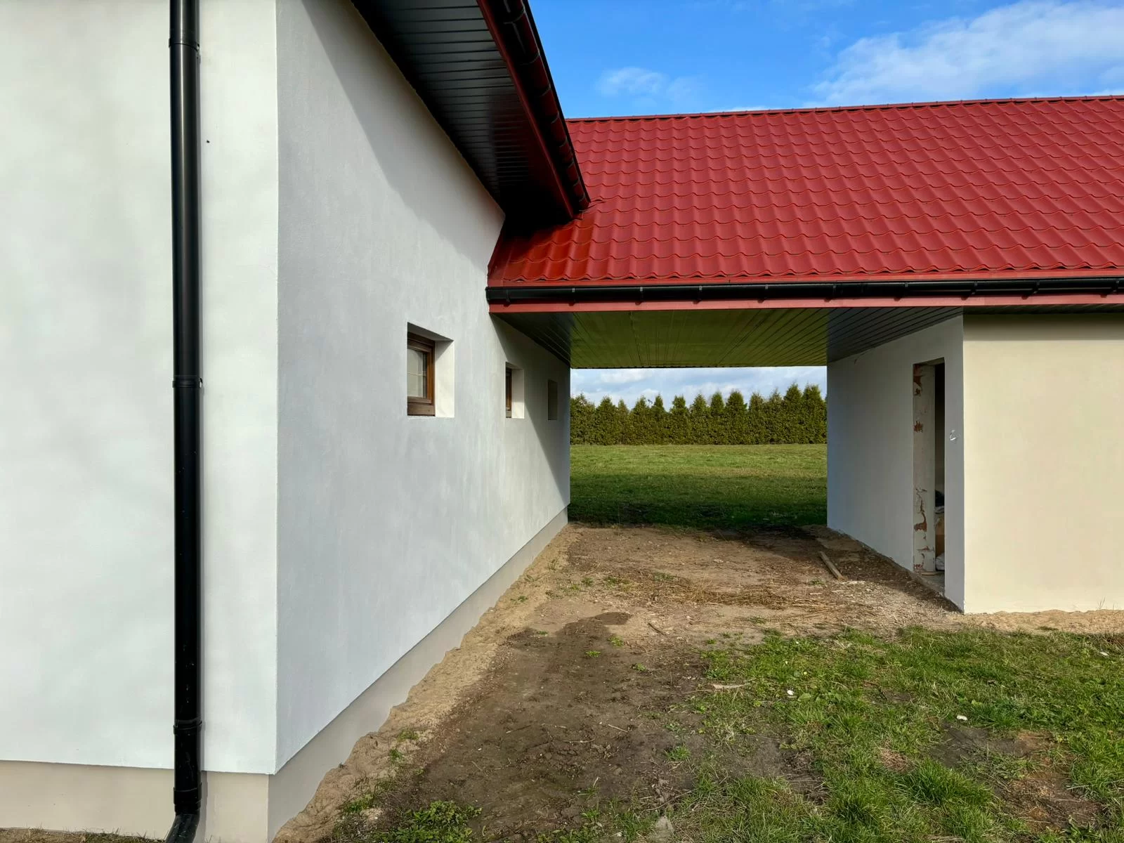 -Materiał budowlany: Wybudowany z pustaka ceramicznego, ocieplony styropianem o grubości 24 cm.