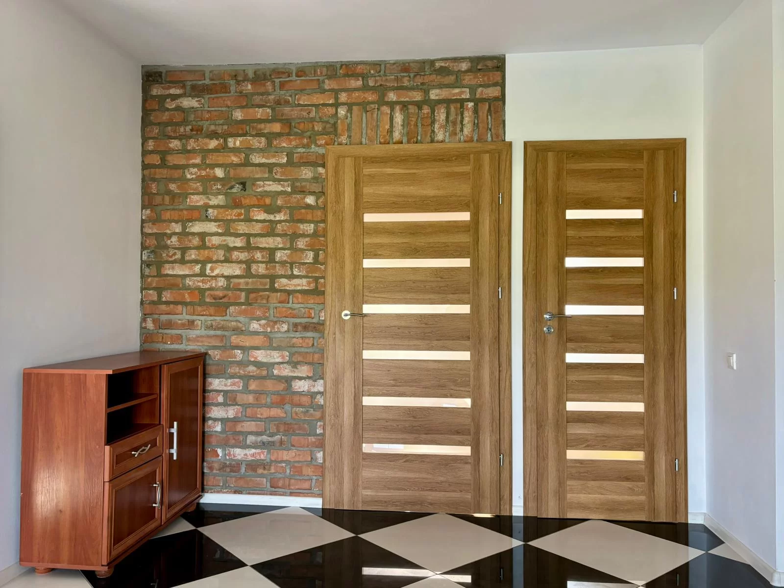 -Drzwi: Wewnętrzne i zewnętrzne drewniane.
