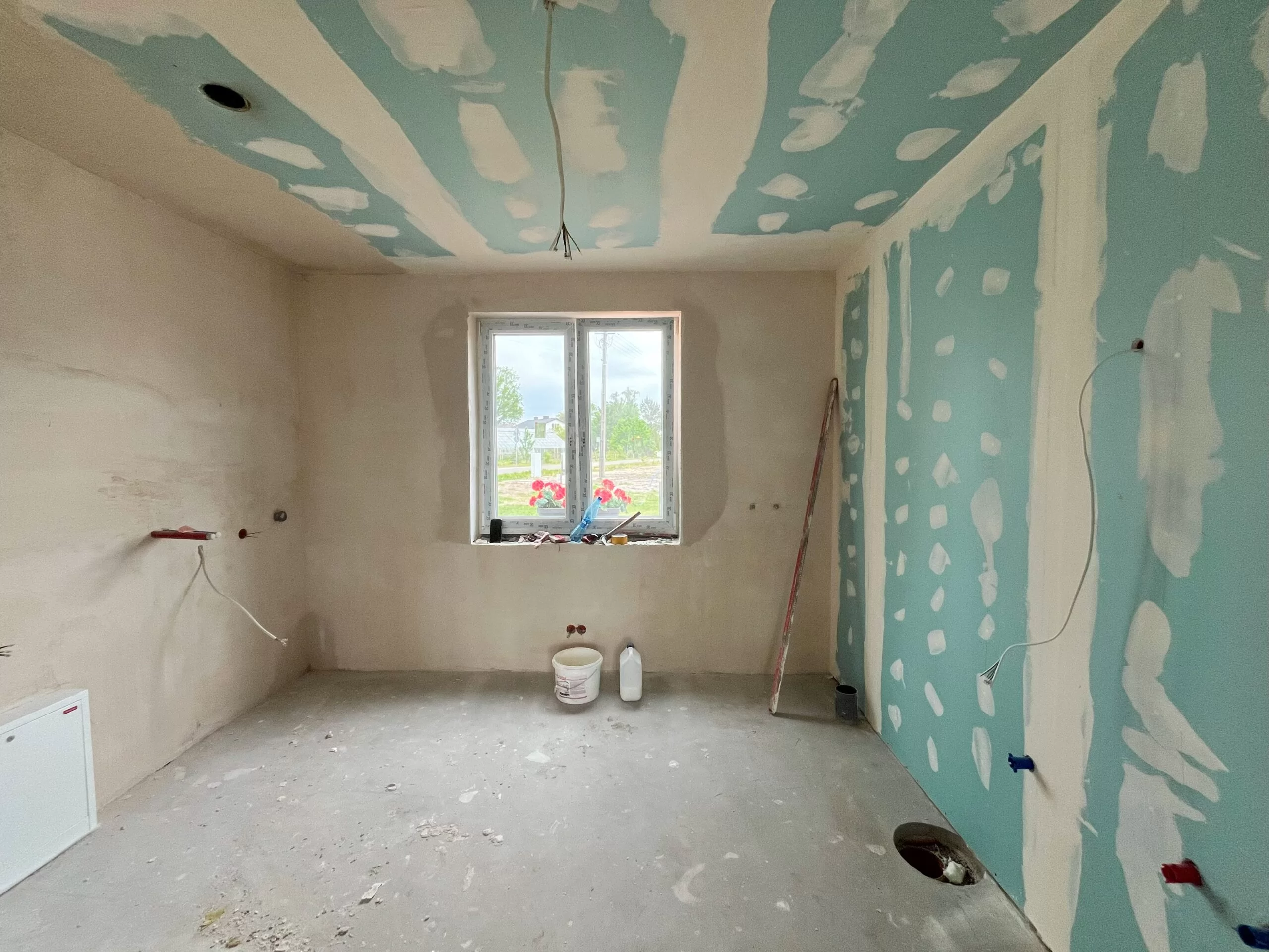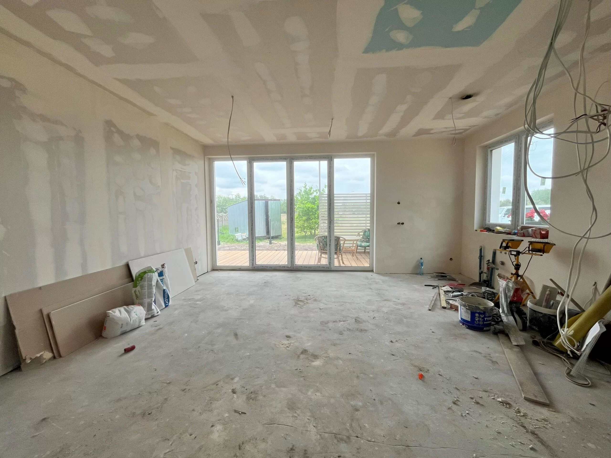 -wnętrze wymaga pomalowania ścian, położenia podłogi (wylewki zrobione, na całości rozciągnięte ogrzewanie podłogowe).