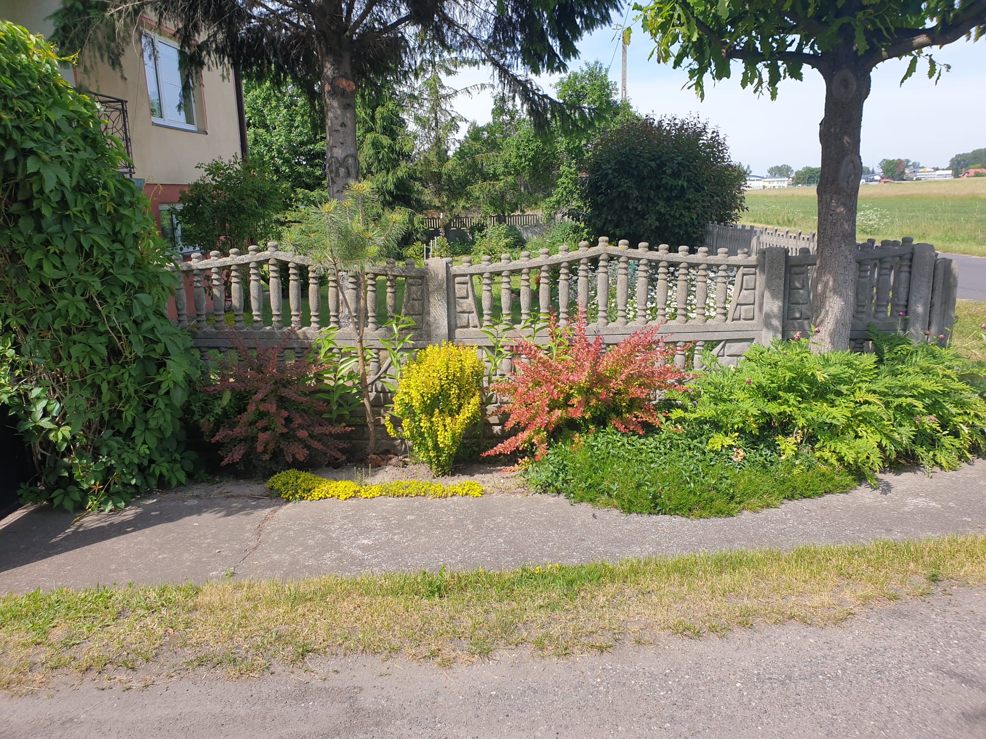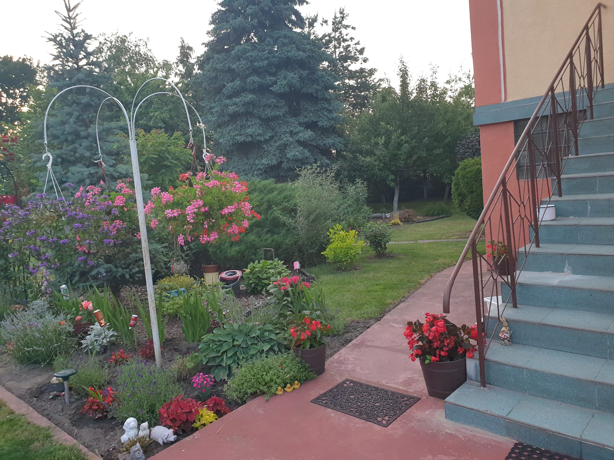 Otoczenie domu zadbane, liczne nasadzenia roślinności.