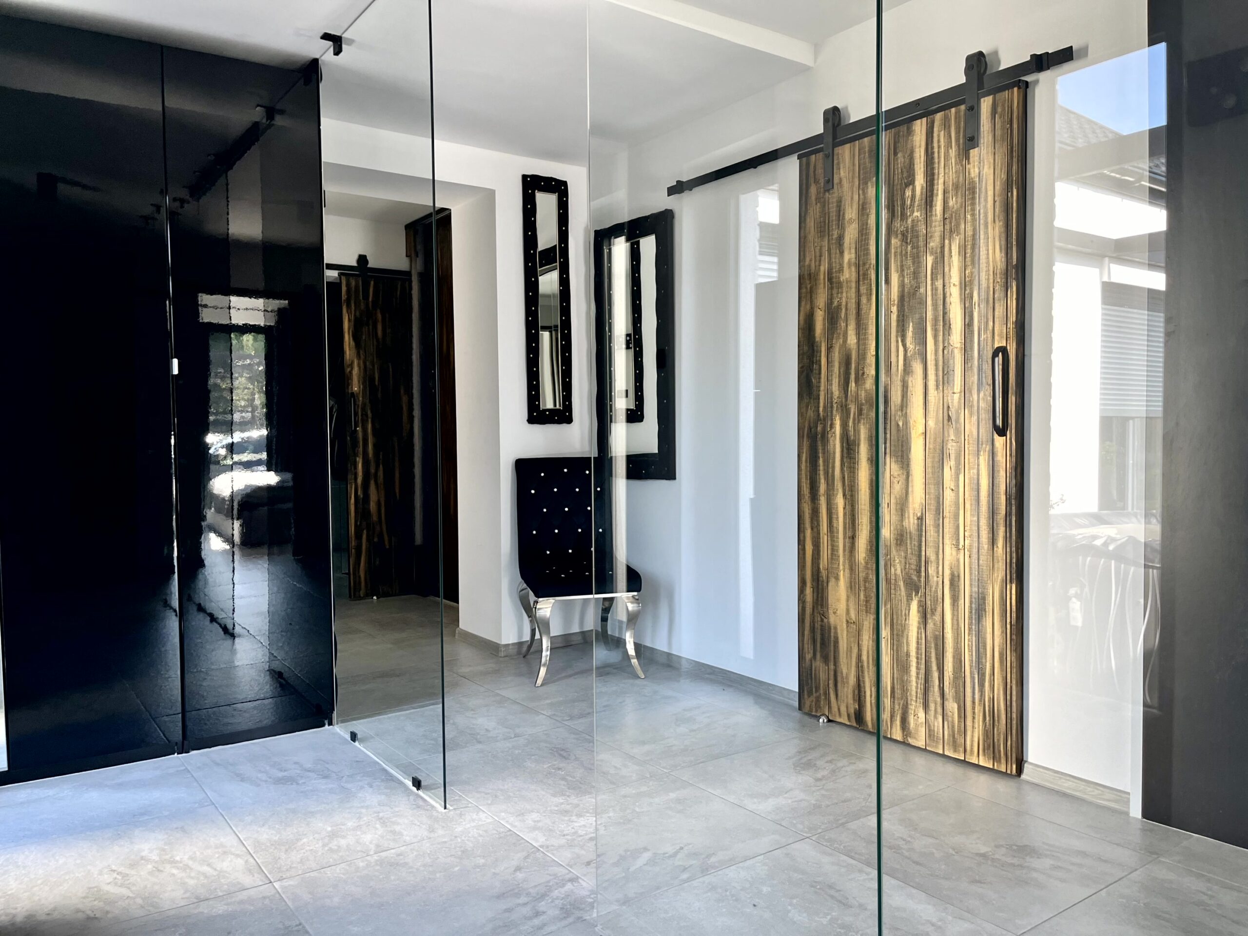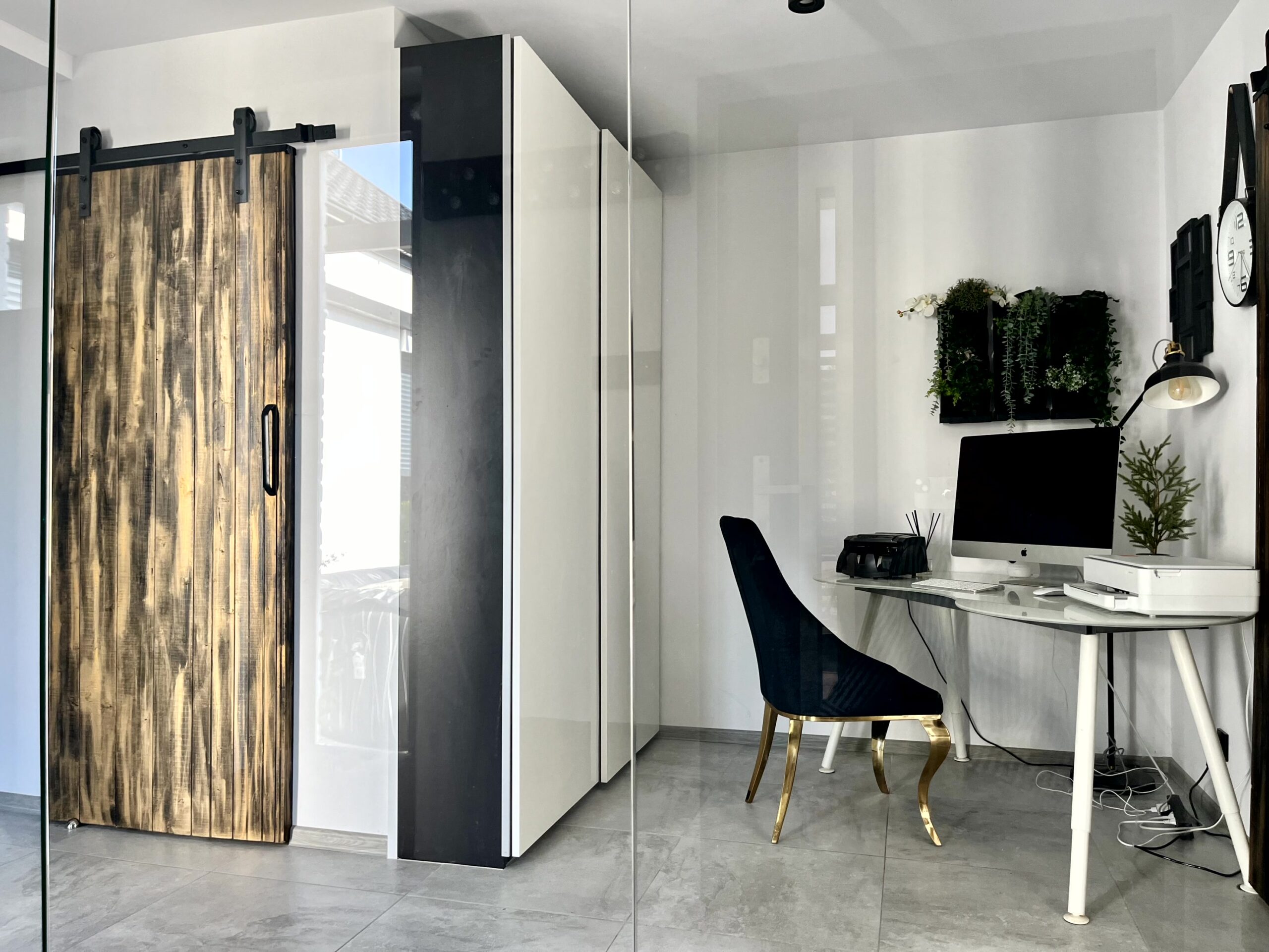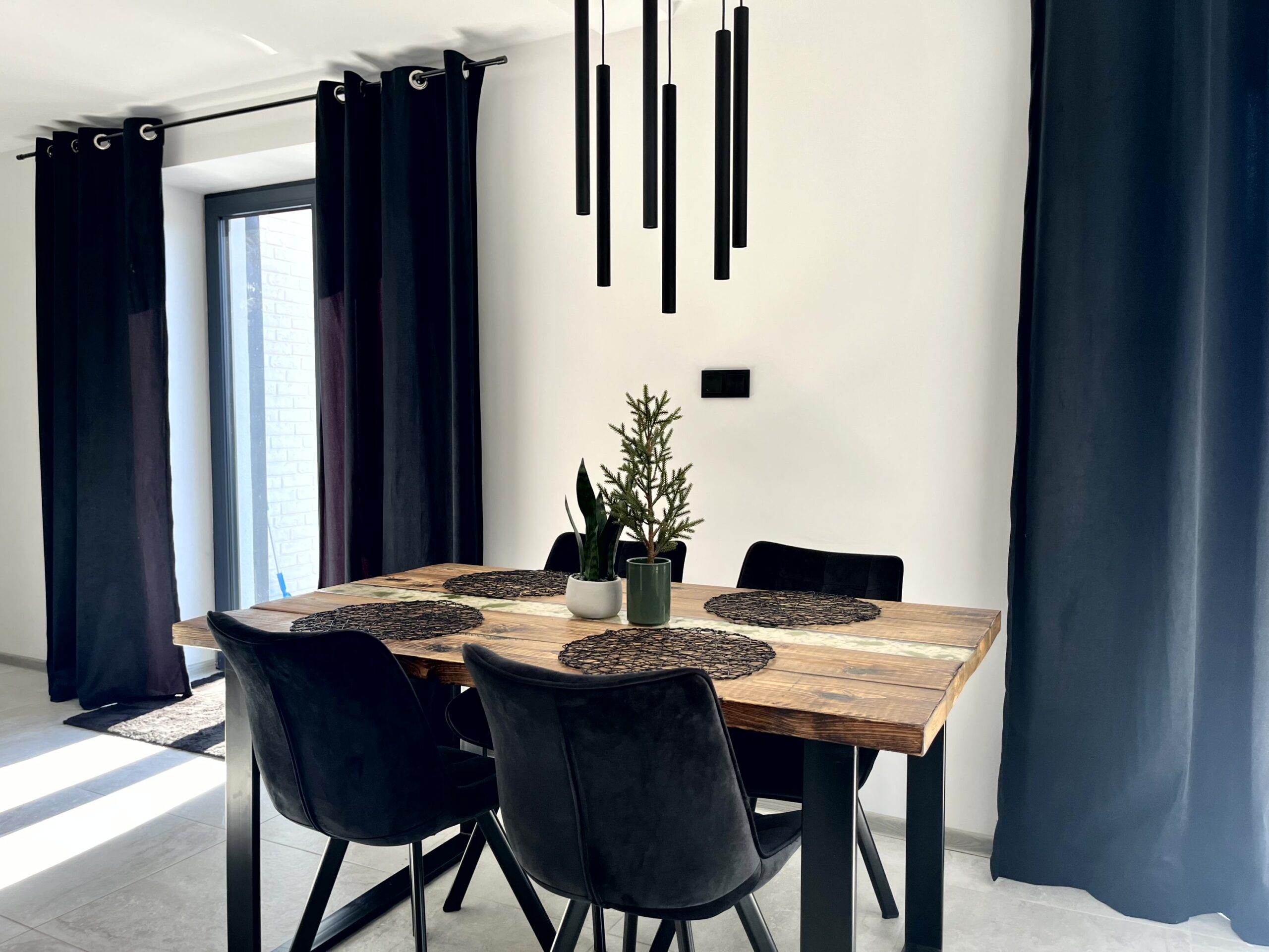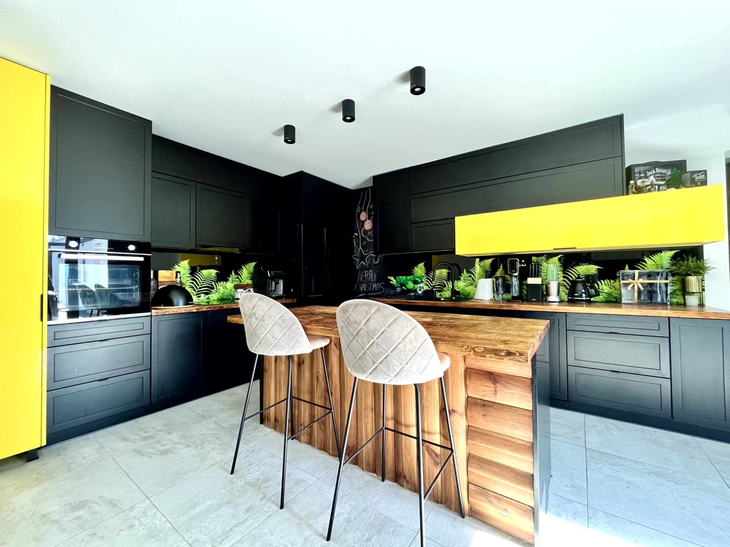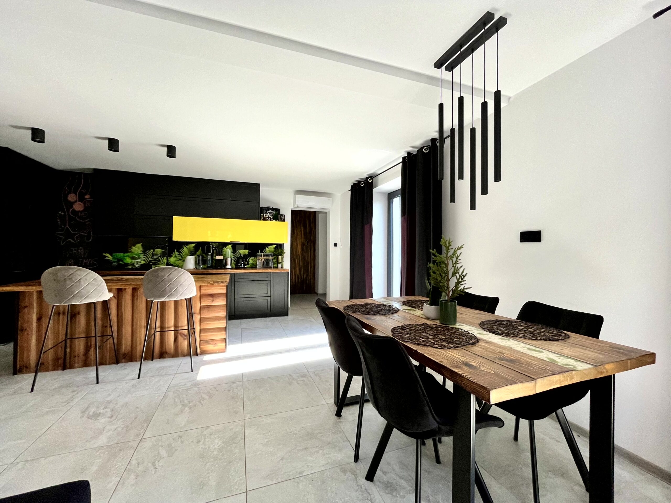 - większość mebli wszystkie drzwi wewnętrzne oraz blaty kuchenne wykonane z litego drewna