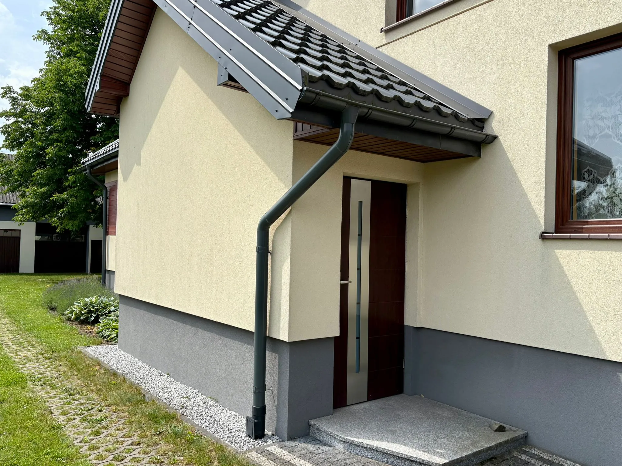 -budynek boczną ścianą graniczy z bliźniaczym budynkiem po sąsiedzku,
