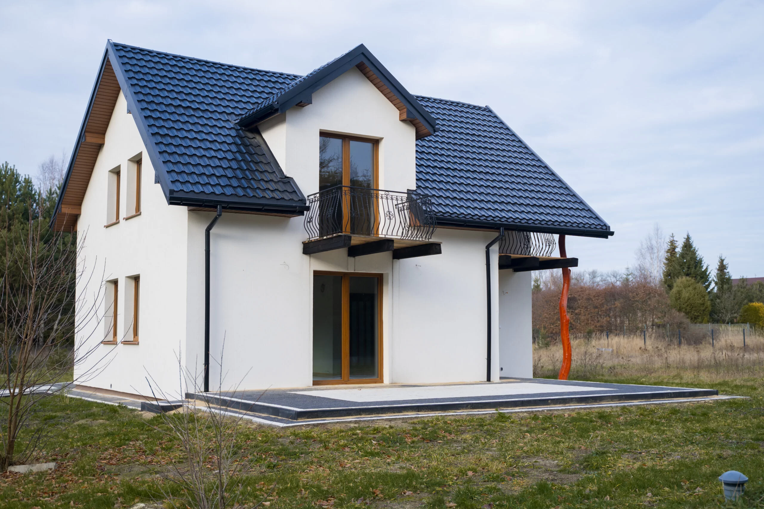 -Dach: Pokryty blachodachówką.