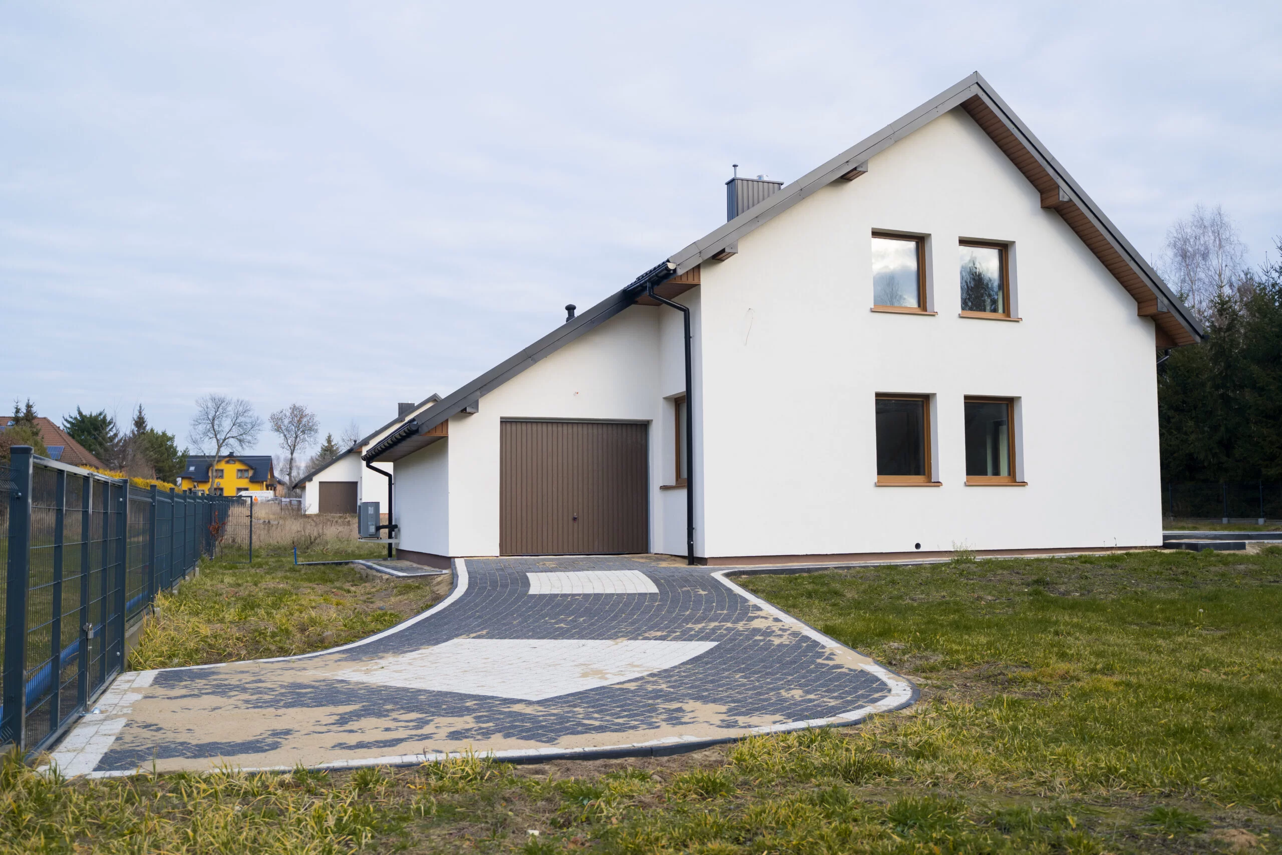 -Ogrodzona płotem panelowym + brama i furtka bez napędu elektrycznego.