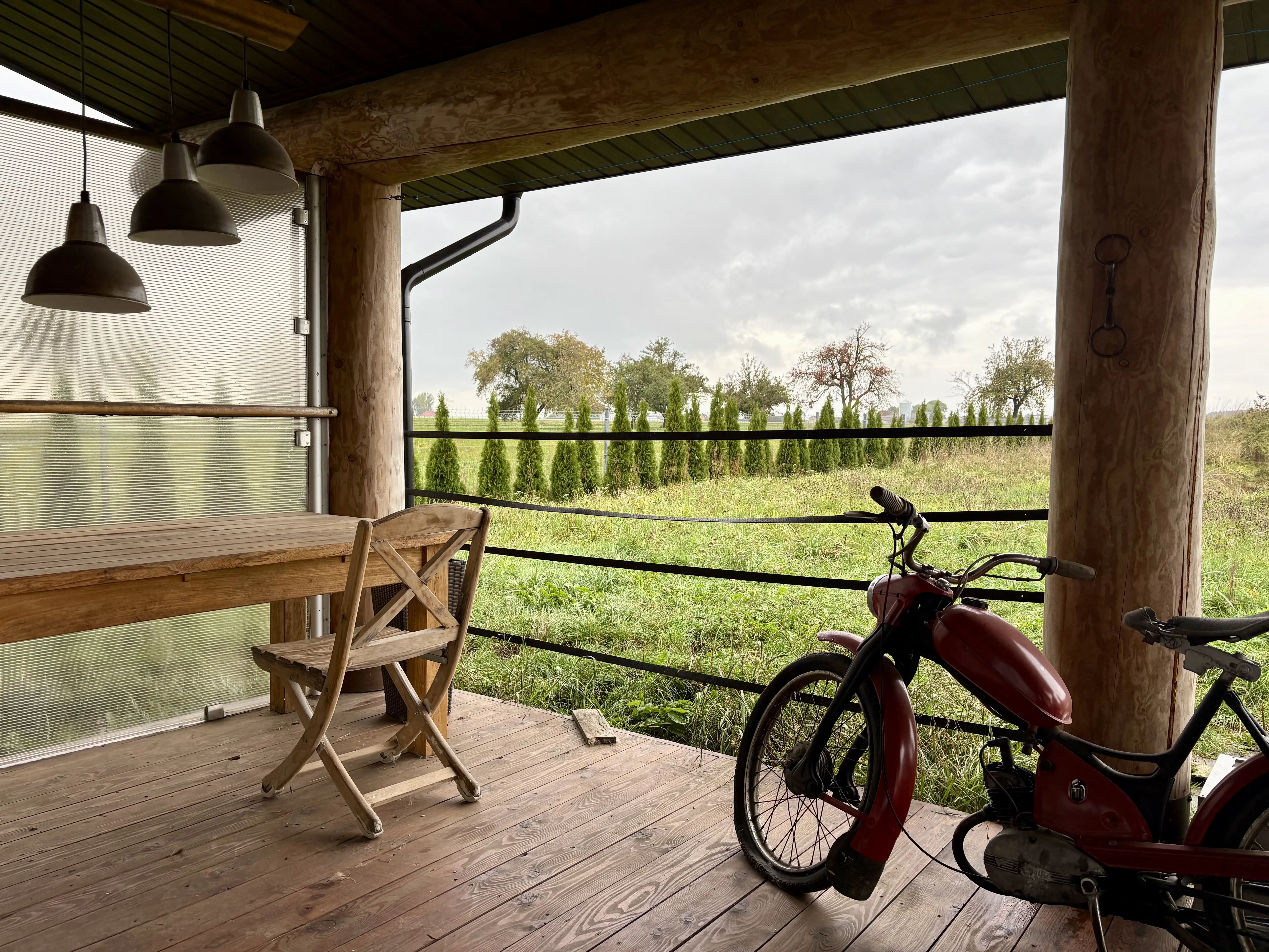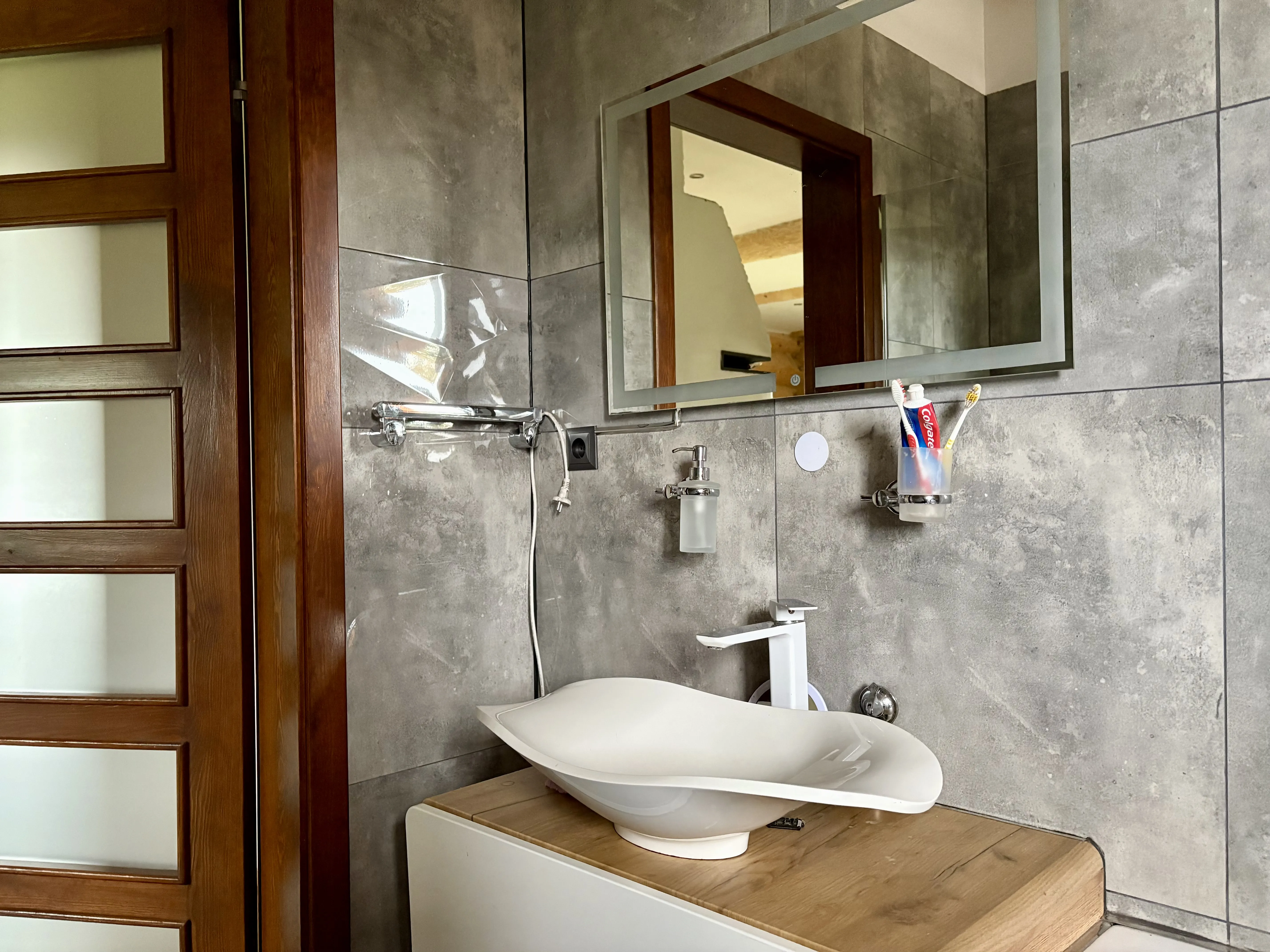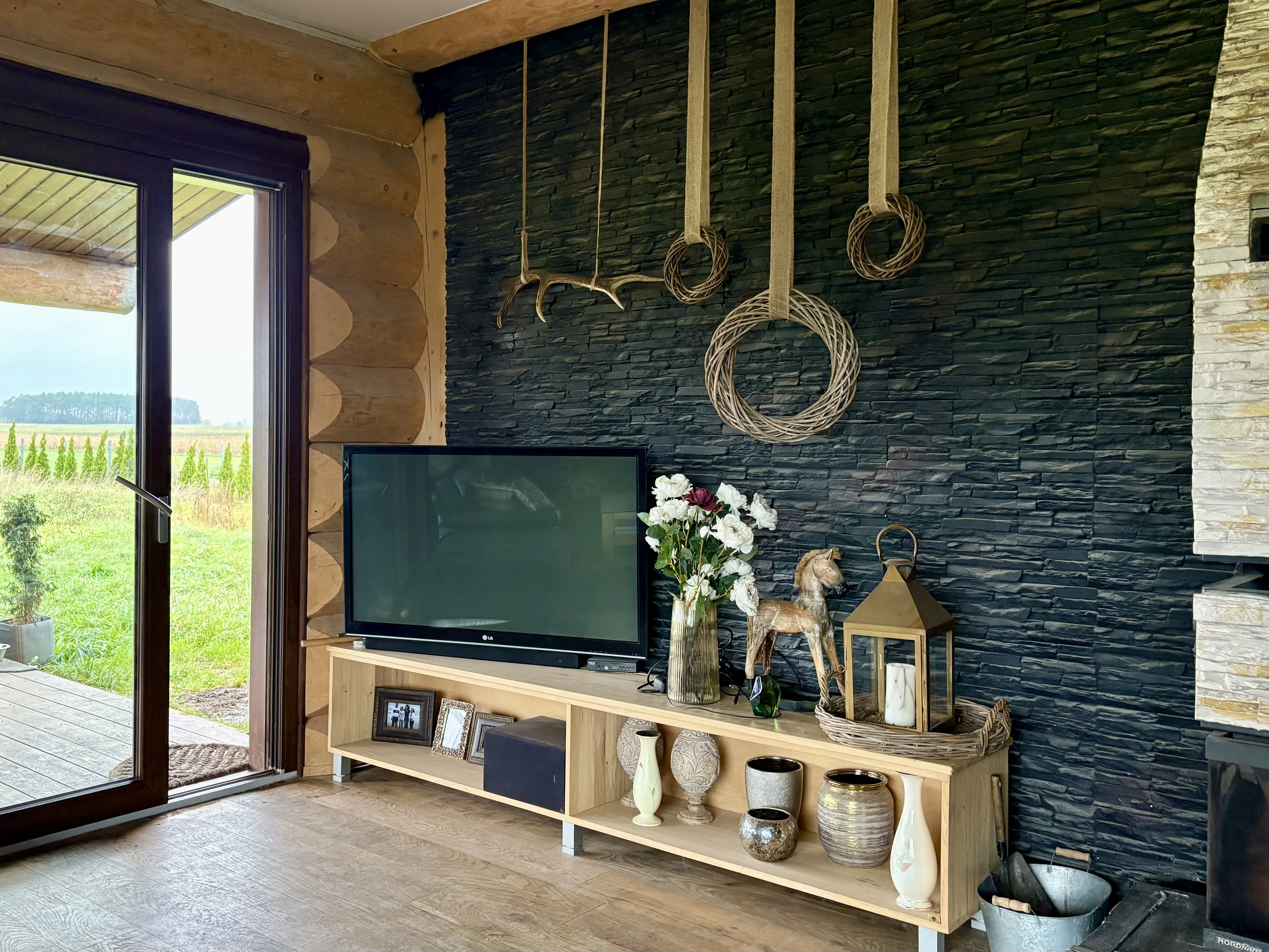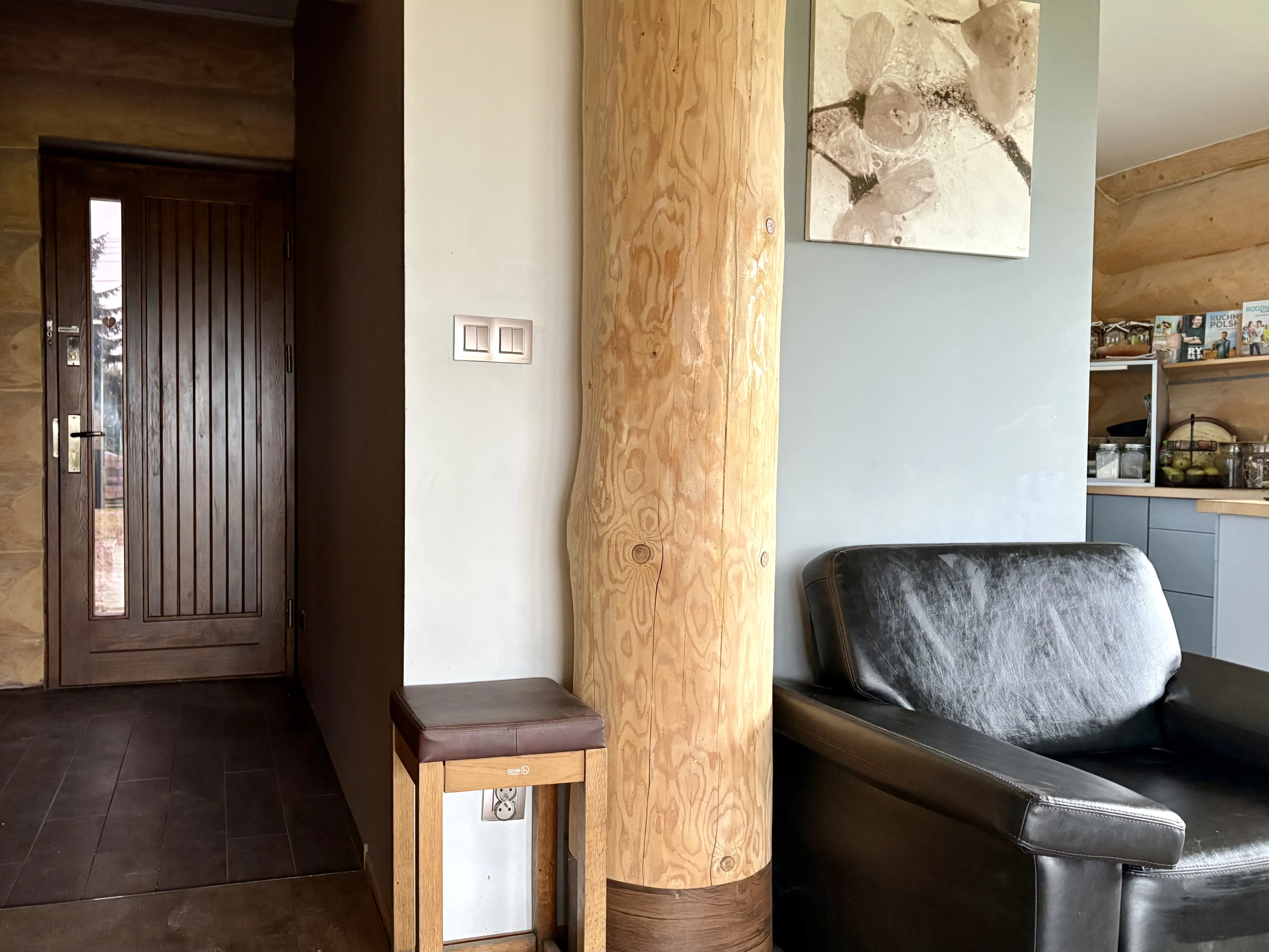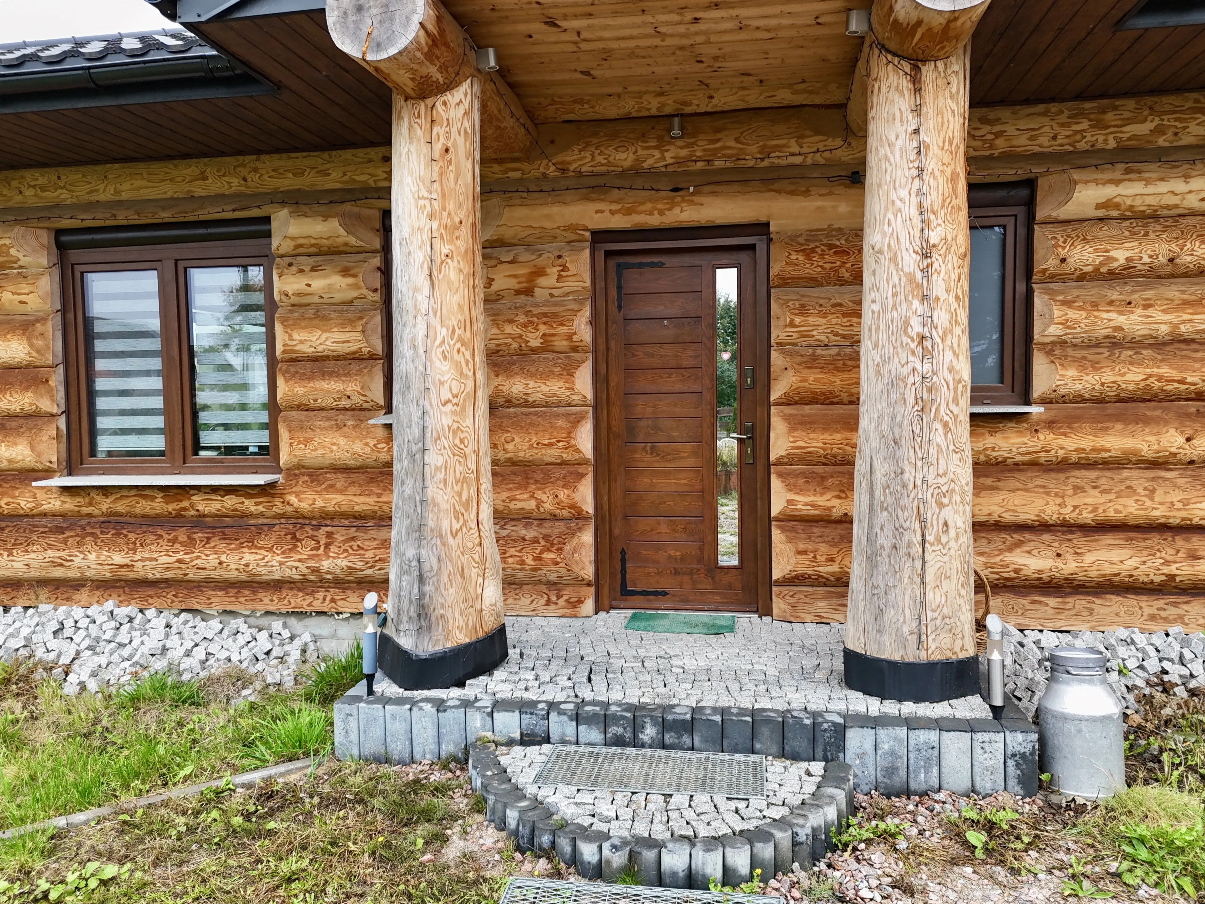 Dom wykonany w technologii bali świerkowych o średnicy 35–45 cm, co gwarantuje doskonałą izolację termiczną i niepowtarzalny, naturalny klimat wnętrza.