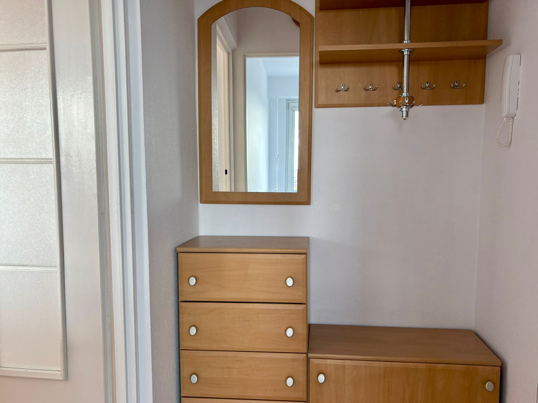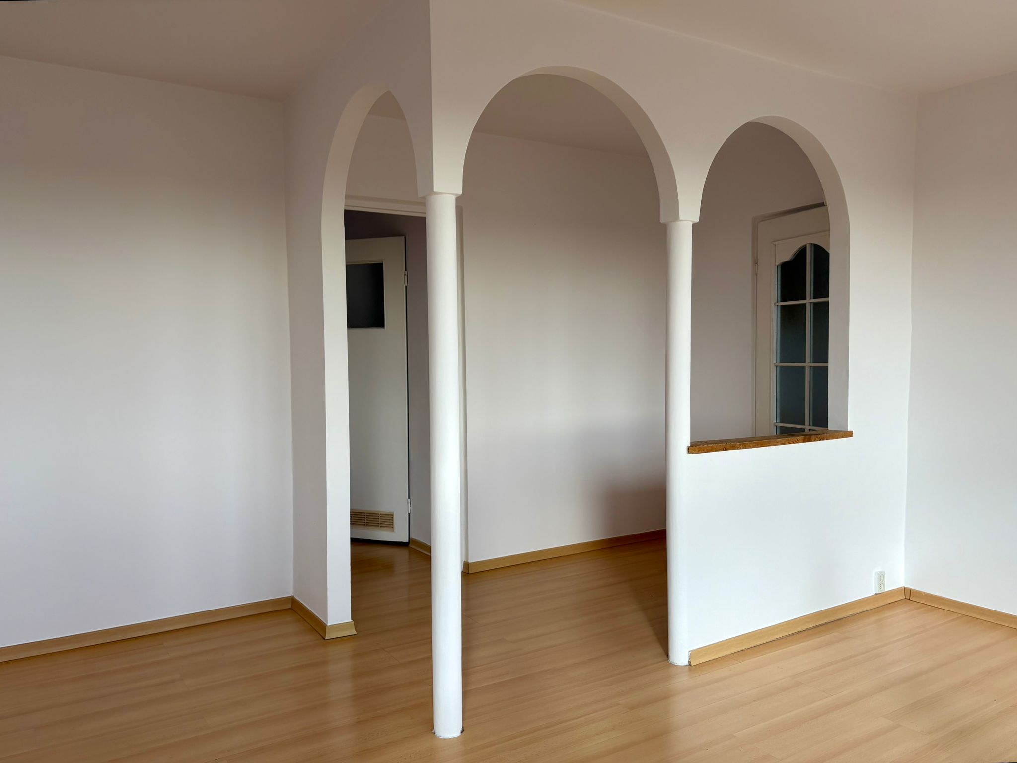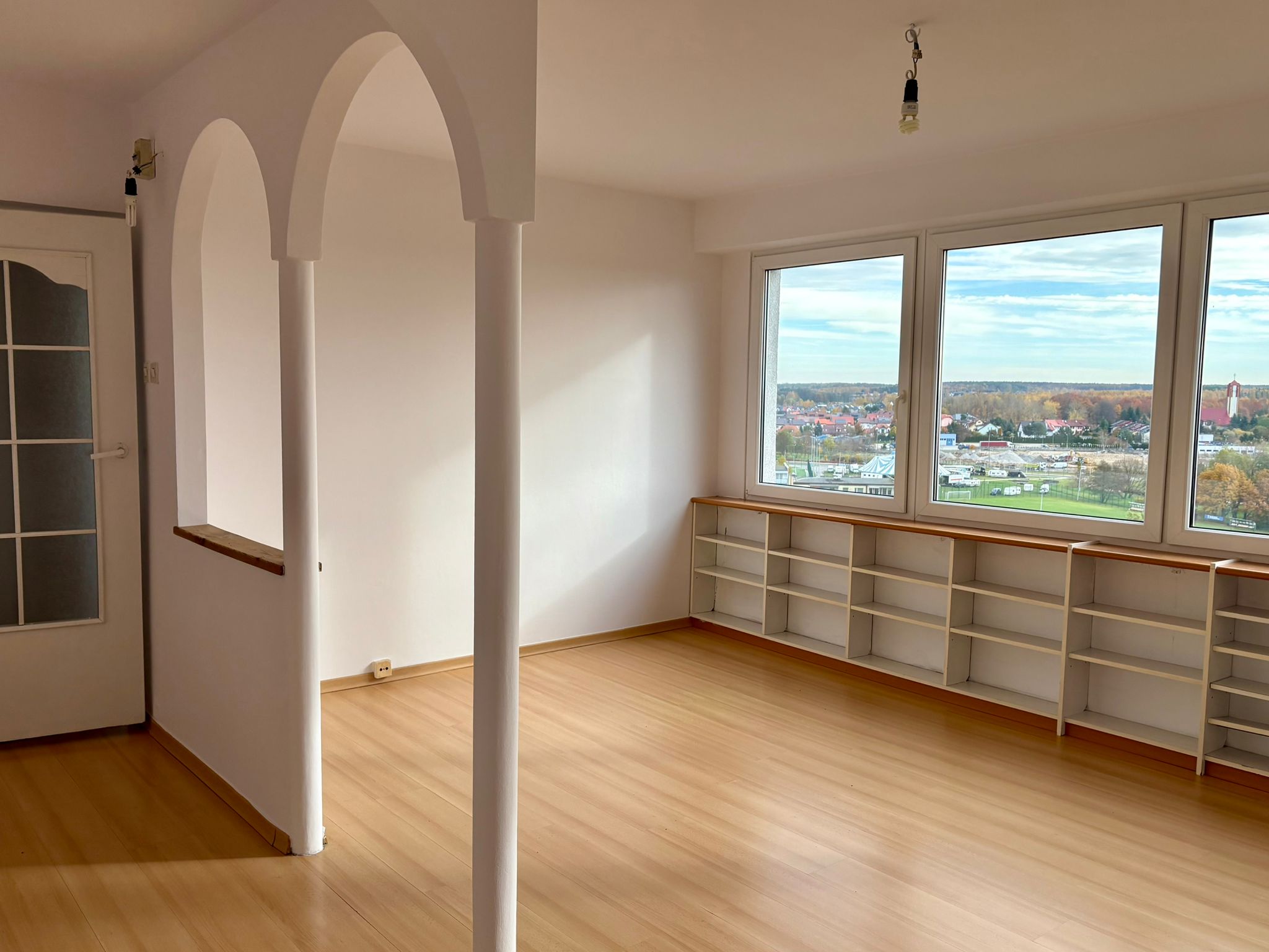 Mieszkanie częściowo po remoncie. Ściany odświeżono, położono gładzie – pomalowane na biało, co optycznie powiększa przestrzeń i daje poczucie czystości.